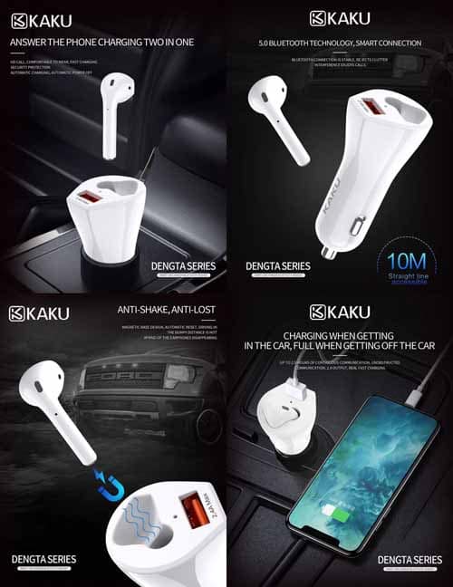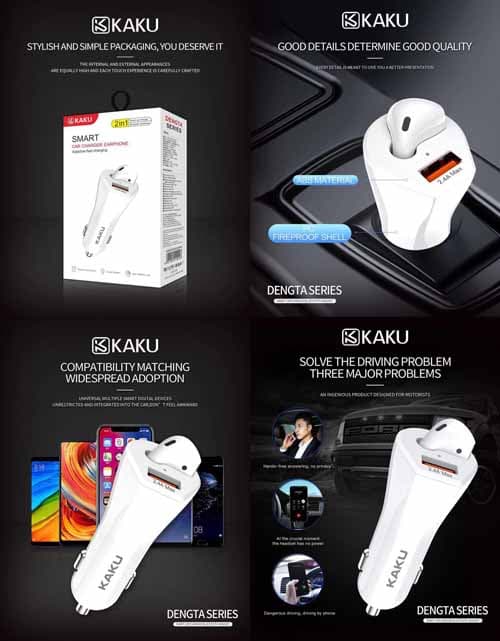 IKAKU Smart Car Charger& Stereo Earphone