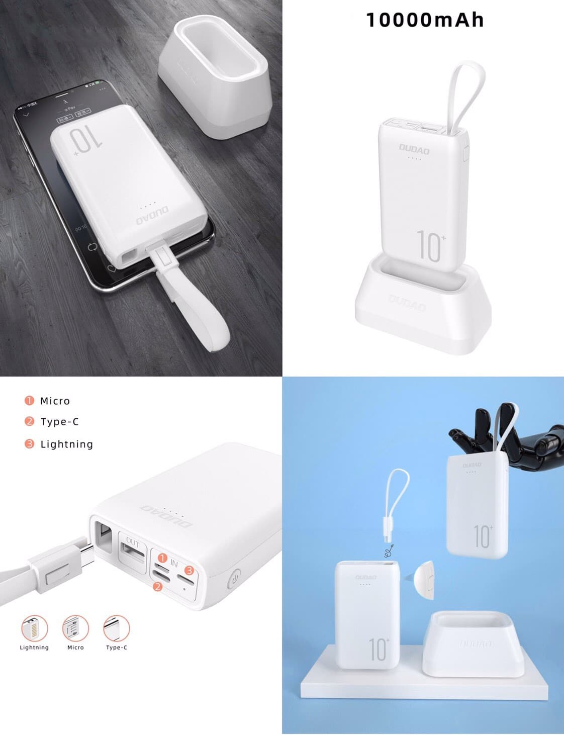 - ดีไซน์สวยงาม กระทัดรัด ขนาดพอเหมาะ สะดวกแก่การพกพา มีไฟแอลอีดีแสดงความจุของแบตเตอรี่ที่เหลือ พาวเวอร์แบงค์ตัวนี้มาพร้อมกับแท่นวางชาร์จ เพียงแค่เสียบลงในฐานชาร์จก็จะชาร์จได้อย่างง่ายดาย ช่องเสียบชาร์จไฟมีมาให้ทั้ง Lightning MicroUSB และ Type-C ชาร์จสมาร์ทโฟนได้ทุกรุ่น และมีสายทั้งสามแบบรวมมาในแพคเกจด้วย ตัวเครื่องพาวเวอร์แบงยังมีช่องสำหรับเก็บสาย Lightning ไม่ต้องกังวลกับการหาสายไม่เจอเพราะสายจะอยู่กับตัวเครื่องตลอด