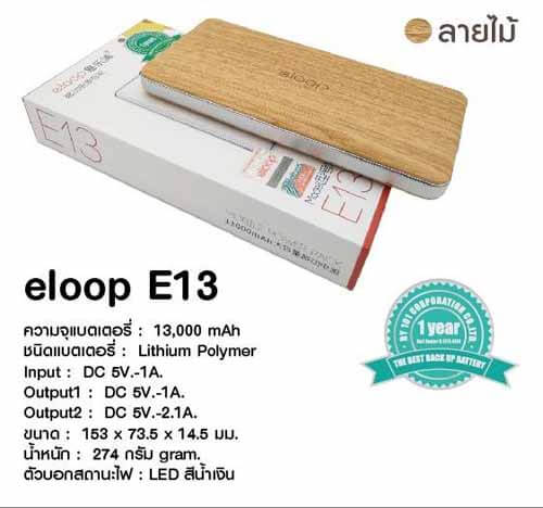 รายละเอียดและข้อมูลสินค้า พาวเวอร์แบงค์ Eloop E13