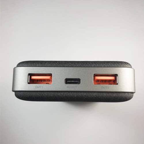 แบตสำรอง / พาวเวอร์แบงค์ / Power Bank E45 รุ่นใหม่ ทำด้วยวัสุดแข็งแรงทนทาน ขอบด้านข้างเป็นอลูมิเนียม ผิวนอกหุ้มด้วยผ้า Fabric อย่างดีกันลอยและกันลื่นอีกด้วย มีให้เลือก 2 สี คือ สีดำและสีน้ำเงิน